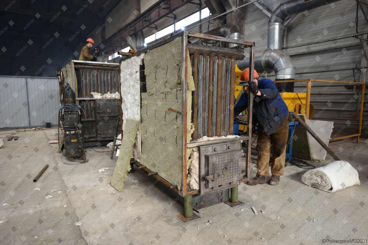 Все водогрейные котлы 0 58 МВт нашего производства - стальные, горизонтальные, водотрубные, прямоточные и компактные. Трубная часть котельного блока выполняется из труб различных диаметров, материал труб сталь 10 и 20. Блок снаружи обваривается стальной охлаждаемой полосой, поэтому в наших котлах исключена возможность задымления котельного зала. Снаружи на каркас из профильной трубы и швеллера крепится утеплитель и декоративная обшивка из полимерного листа. В обшивке предусмотрены лючки для очистки поверхностей нагрева.
